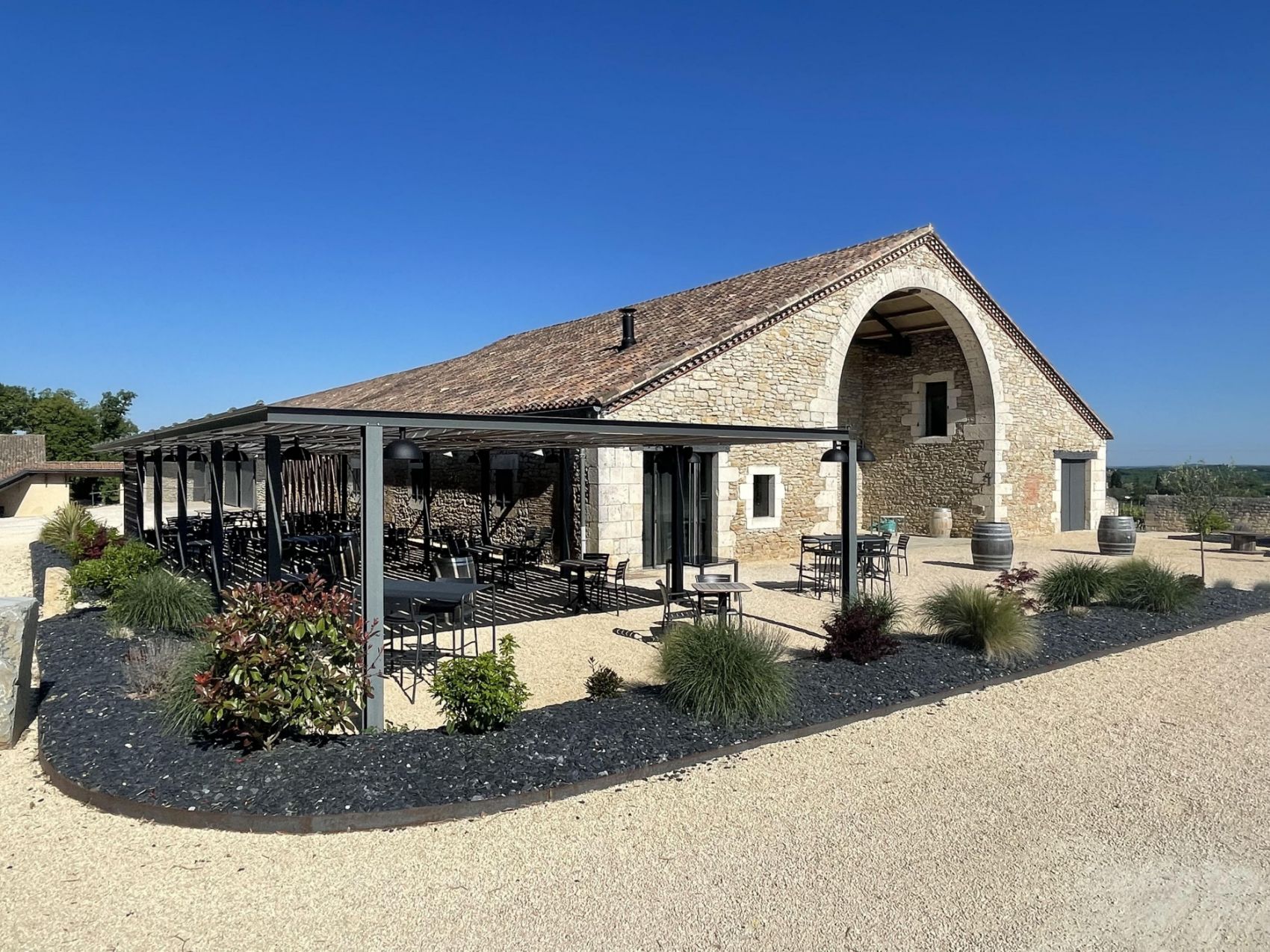 " Être attablé au sein d’un chai bordé de vignes, savourer la production du Château (hautement recommandé), et les mets aux saveurs locales.